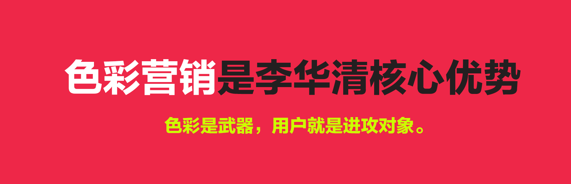 李華清“色彩研究中心”成立于2009年,截止目前仍是國內營銷咨詢與創意設計行業唯一一家擁有獨立色彩研究中心的咨詢機構,同時也是李華清以超前的戰略思維預判到了“色彩營銷”對于未來商業競爭和建立差異化品牌所扮演的重要戰略角色。在當今消費者注意力嚴重稀缺,且產品(服務)“創新”無處不在的浪潮中,傳統的營銷、創意與設計已經無法滿足用戶日益“善變”的審美需求。而“色彩營銷”卻在新的消費人群和消費環境中發揮了巨大的潛能和作用,并在終端決定了消費者67%的購買意愿。使得產品和創意在終端銷售場景中脫穎而出,為品牌贏得了消費者注意力營銷的強大份額。