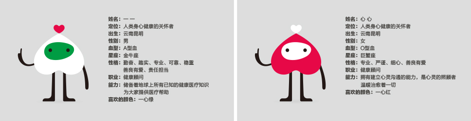 比如在診所里用藥店的顏色,那是不搭調的,所以要去配合品牌進行調整。他們的形象不變,名字不變,他們永遠是“一一”和“心心”,只是身上的顏色(衣服)發生了變化。