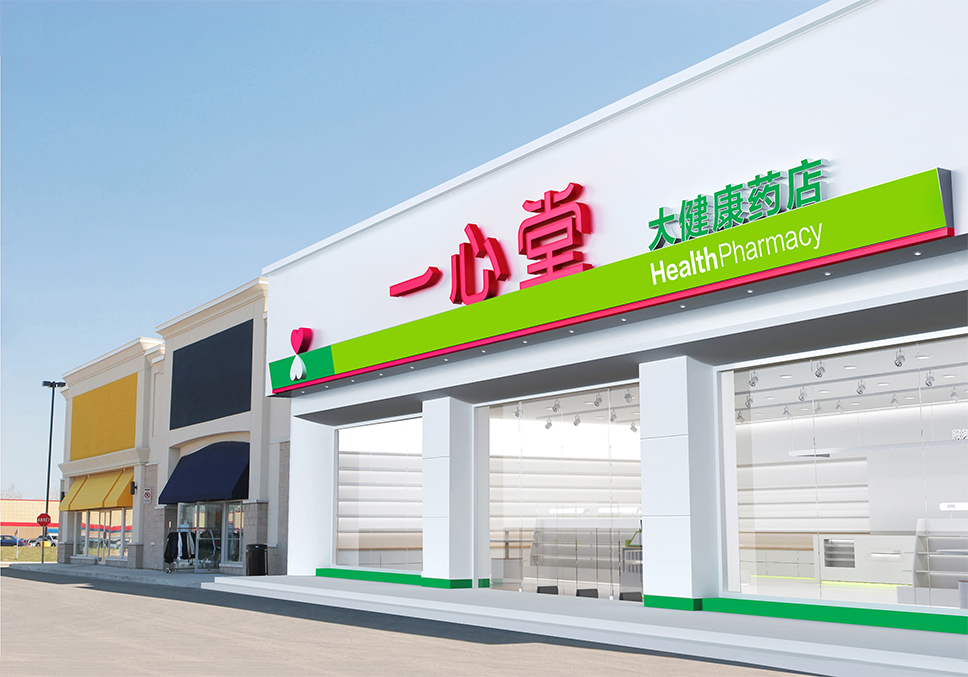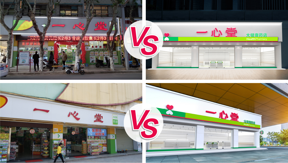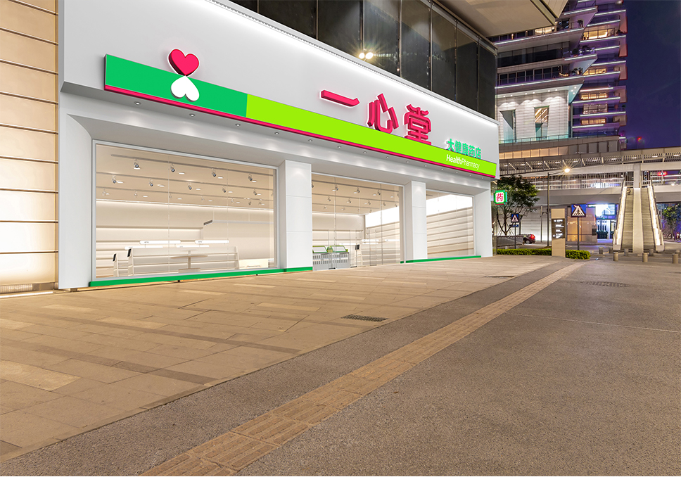 所以各業態的終端形象識別設計也遵循著集團業態品牌戰略統一性原則,建立藥店門頭與集團其他業態門頭之間的品牌戰略同盟關系。