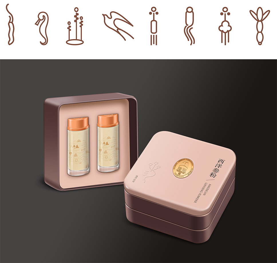 高端品質、簡潔干凈,李華清提取品牌元素創意延伸,規范鴻翔中藥貴細禮盒包裝。獨特的造型和色彩聚焦消費者的視覺中心,提升品牌視覺第一印象,有力傳播品牌,實現產品的自動營銷。